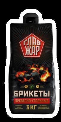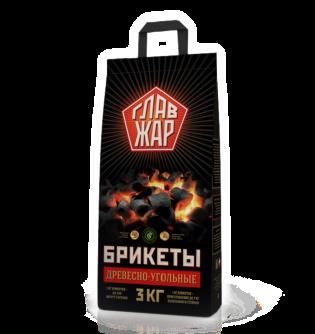 Брикеты древесно-угольные “ГлавЖар”, 3кг.