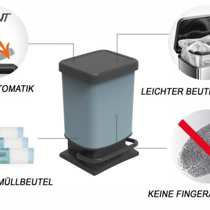 Ведро изготовлено из высококачественного пластика, легкое и прочное одновременно. Комфортная работа обеспечивается как практичной функцией подножки, так и плотно закрывающейся крышкой, которая бесшумно опускается и обеспечивает надежную защиту от неуловимых запахов отходов.
