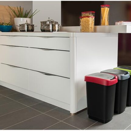 Урна для мусора на двадцать пять литров из серии TWIST изготовлена из проверенных на прочность материалов, которые отличаются стойкостью и долговечностью.