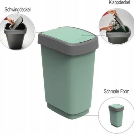 Швейцарские решения известны своим высоким качеством и хороши во многих областях. Это относится и к линейке мусорных ведер с крышкой Rotho модели Swing bin. Ведро для мусора с крышкой Swing bin, объемом 50 литров, изготовлено из материалов, проверенных на прочность и которые отличаются долговечностью использования. Когда речь идет о решениях, примененных в контейнерах для мусора Swing bin, следует обратить внимание на удобную откидную крышку, которая значительно упрощает утилизацию мусора. Еще один интересный элемент - широкая полоска, закрывающая мешок для мусора, чтобы он не был виден.