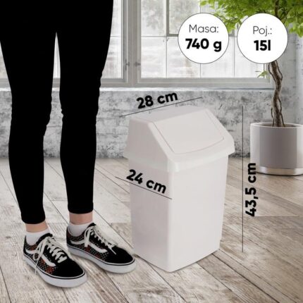 Практичный мусорный бак, обеспечивающий чистоту в помещении, где он будет использоваться. Идеально подходит как для кухни, ванной комнаты, так и для офиса. Корзина изготовлена из качественного пластика. Бак открывается вручную с помощью вращающейся крышки. Его конструкция оставляет содержимое корзины постоянно закрытым и невидимым.Емкость: 50 л