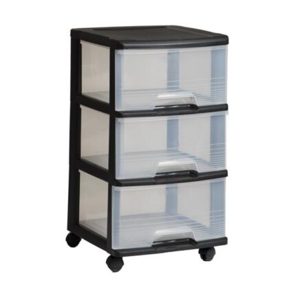 Комод Curver DRAWER System 3X20L (прозр./черный) - это легкий компактный комод для хранения домашних аксессуаров и мелочей. Комод имеет 3 выдвижных вместительных ящика объемом 20л. Простой дизайн найдет своё применение в спальне, ванной, гостиной или гардеробной. В корпусе комода предусмотрены колеса для легкого перемещения в любое место. Ящики выполнены из прозрачного полипропилена и позволяют легко увидеть содержимое , тем самым быстро найти необходимый предмет. Комод имеет гладкую поверхность и не требует ухода.