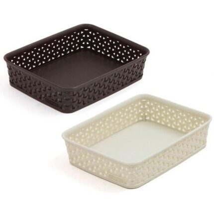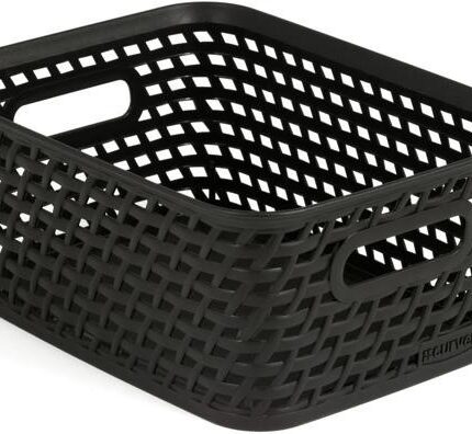 Идеальная корзина для хранения домашних мелочей. Изделие изготовлено из качественного пластика, доступно в классических цветах и нескольких размерах.
