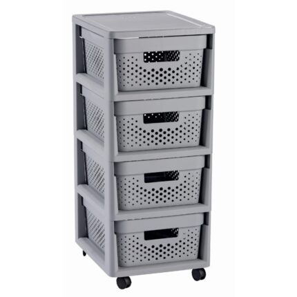 Самый простой способ организовать домашние аксессуары и мелочи - воспользоваться комодом Infinity. Наконец-то все мелочи найдут своё постоянное место! Комод имеет 4 выдвижных вместительных ящика с ручками. Благодаря современному стилю комод Infinity найдет своё применение в спальне, ванной, гостиной или гардеробной. В корпусе комода предусмотрены колеса для легкого перемещения в любое место. Ящики перфорированные, что улучшает циркуляцию воздуха внутри. Комод имеет гладкую поверхность и не требует ухода.