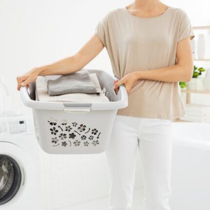 Корзина бельевая Laundry hamper изготовлена из прочного и легкого пластика, имеет уникальный дизайн и вместимость 55 литров, а также имеет боковые ручки на случай, если его необходимо переместить в другое место.