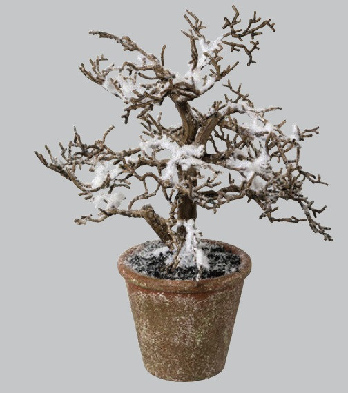 Искусственное дерево в горшке будто покрытое снегом обеспечит зимнее настроение и добавит натуральную ноту в праздничный декор.