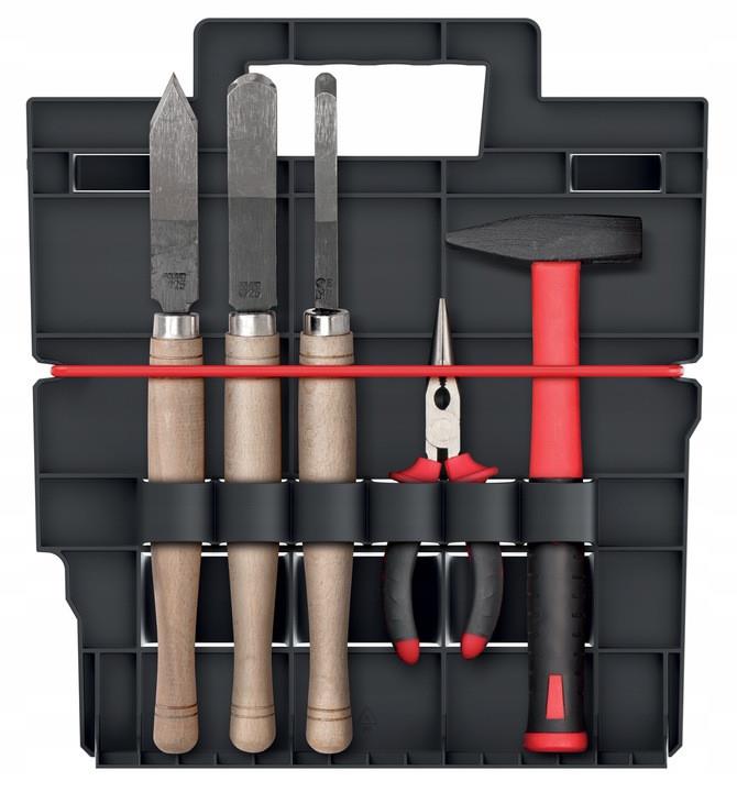 Многофункциональная держатель Kistenberg Modular Solution KMS2530US для ручного инструмента, который также работает как перегородка в передвижном блоке и мастерском ящике серии Modular Solution.