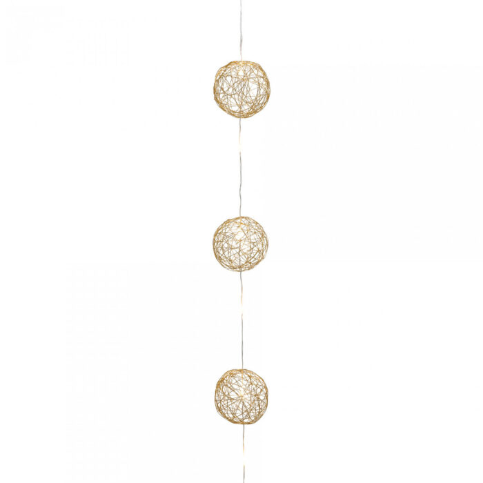 Гирлянда из 10 проволочных шаров выглядит воздушной и праздничной. Диаметр шара 8 см. Есть 6-часовой таймер. Всего в композиции 20 светодиодов (расположены на оси).
