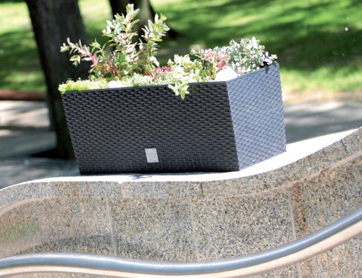 Прямоугольный вазон Rato case с текстурой, точно имитирующей натуральный плетеный ротанг, отлично смотрится в домашнем интерьере, на террасах и балконах, сочетая различные стили и вкусы. Может быть прекрасным дополнением общественных рекреационных зон, например, на террасах кафе.