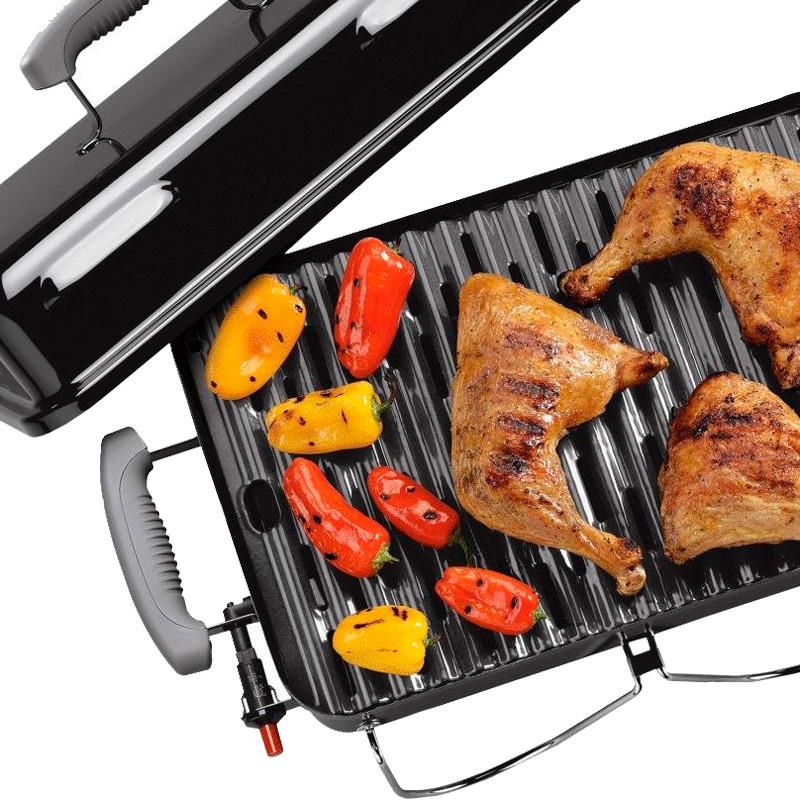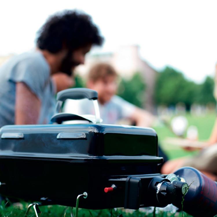 Портативный Газовый гриль Weber Go-Anywhere – потрясающая вещь для активных людей! Эта гриль настолько компактный, что его можно брать с собой везде и всюду! На пляже, на даче, в лесу, на пикнике в парке, на рыбалке –  газовый гриль Go-Anywhere поможет приготовить вкусное угощение для нескольких человек.  Гриль небольшого размера, но очень функциональный и позволяет жарить как на решетке, так и на шампурах, а также можно коптить. Специальные скобы выполняют роль ножек при использовании, а при перевозке гриля поднимаются и надежно закрывают крышку. Вы спокойно можете оставить гриль на улице, невзирая на погодные условия.