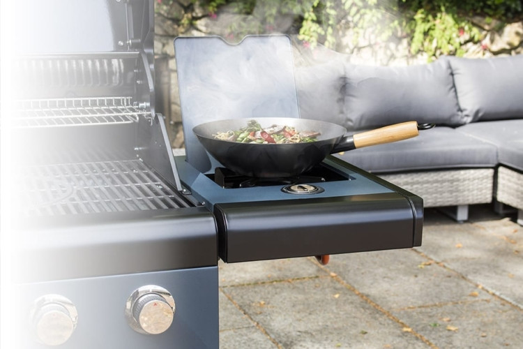 – Боковая горелка – Утоплена так, чтобы боковая полка была плоской, когда она не используется