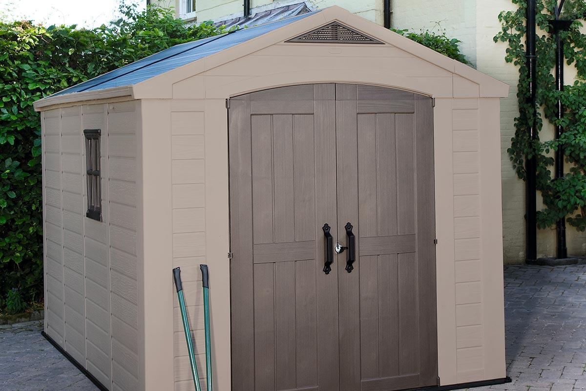 ГлавнаяПластиковые сараи, хозблоки и гаражи из пластика, сундуки и ящикиХозблоки, сараи, гаражи Хозблок FACTOR 8*11 Indoor (8,5 м2), коричневый