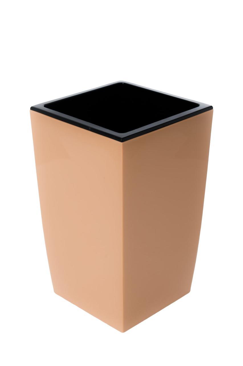Кашпо для цветов со вставкой “Жасмин”, размер 160*160*260мм, высота вставки 150мм капучино