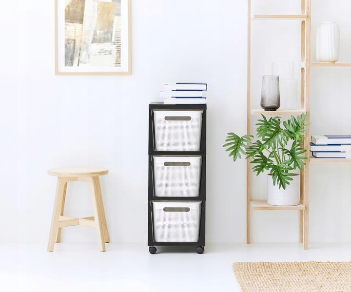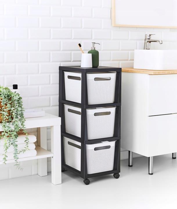 ГлавнаяКорзины, комоды, ящики, коробки для хранения Комод Brisen Tower 3 x 16л с колесами, белый/черный