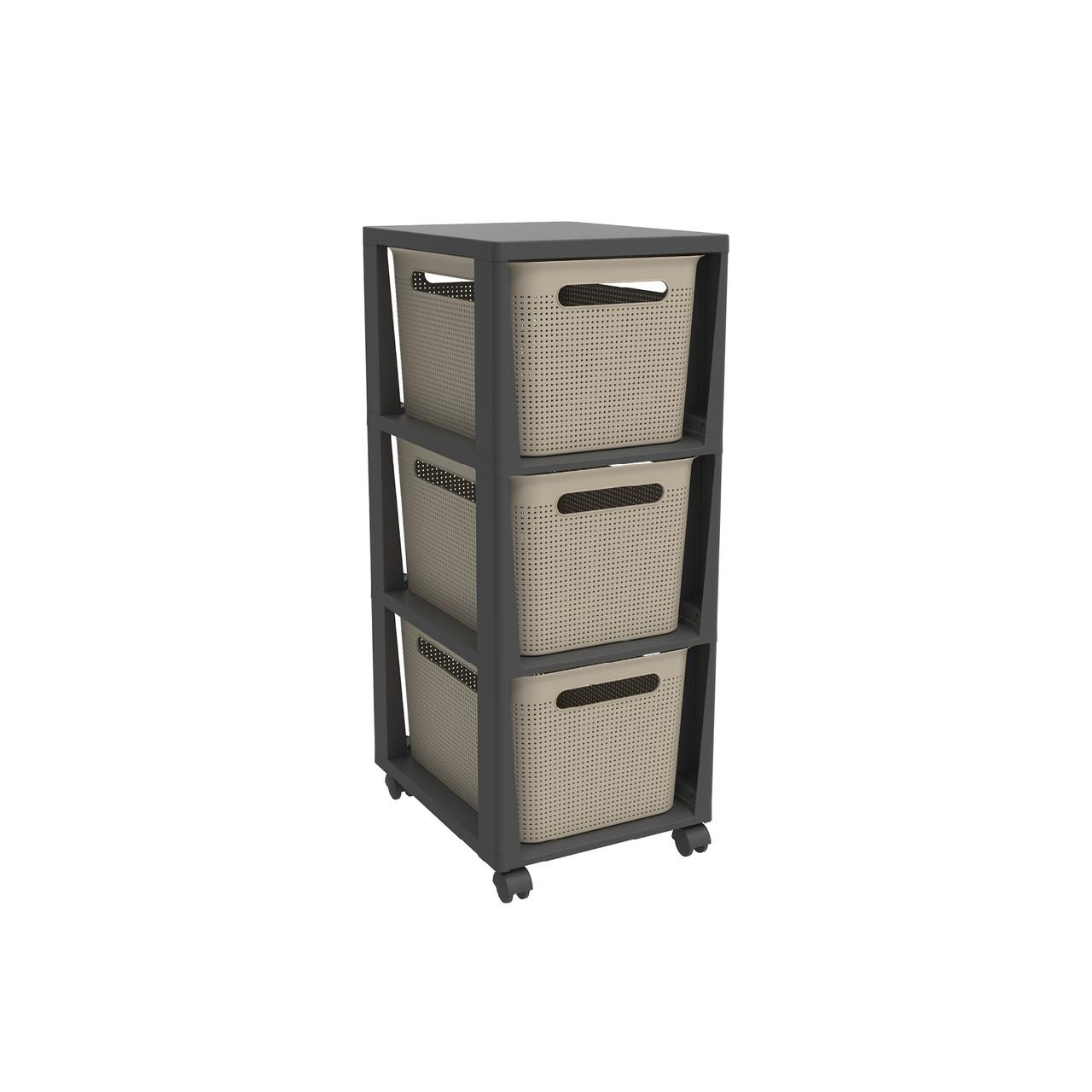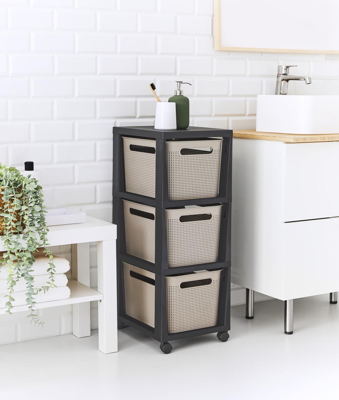 Комод с тремя корзинами объемом 16 л позволит хранить всевозможные вещи в порядке. Каждый ящик оснащен удобными ручками для легкого выдвижения. Отлично подходит в детскую комнату для игрушек, в ванную комнату для мелочей и , например, для полотенец.