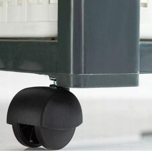 Благодаря четырем вращающимся двойным колесикам выдвижной комод можно с легкостью переместить в любое место.