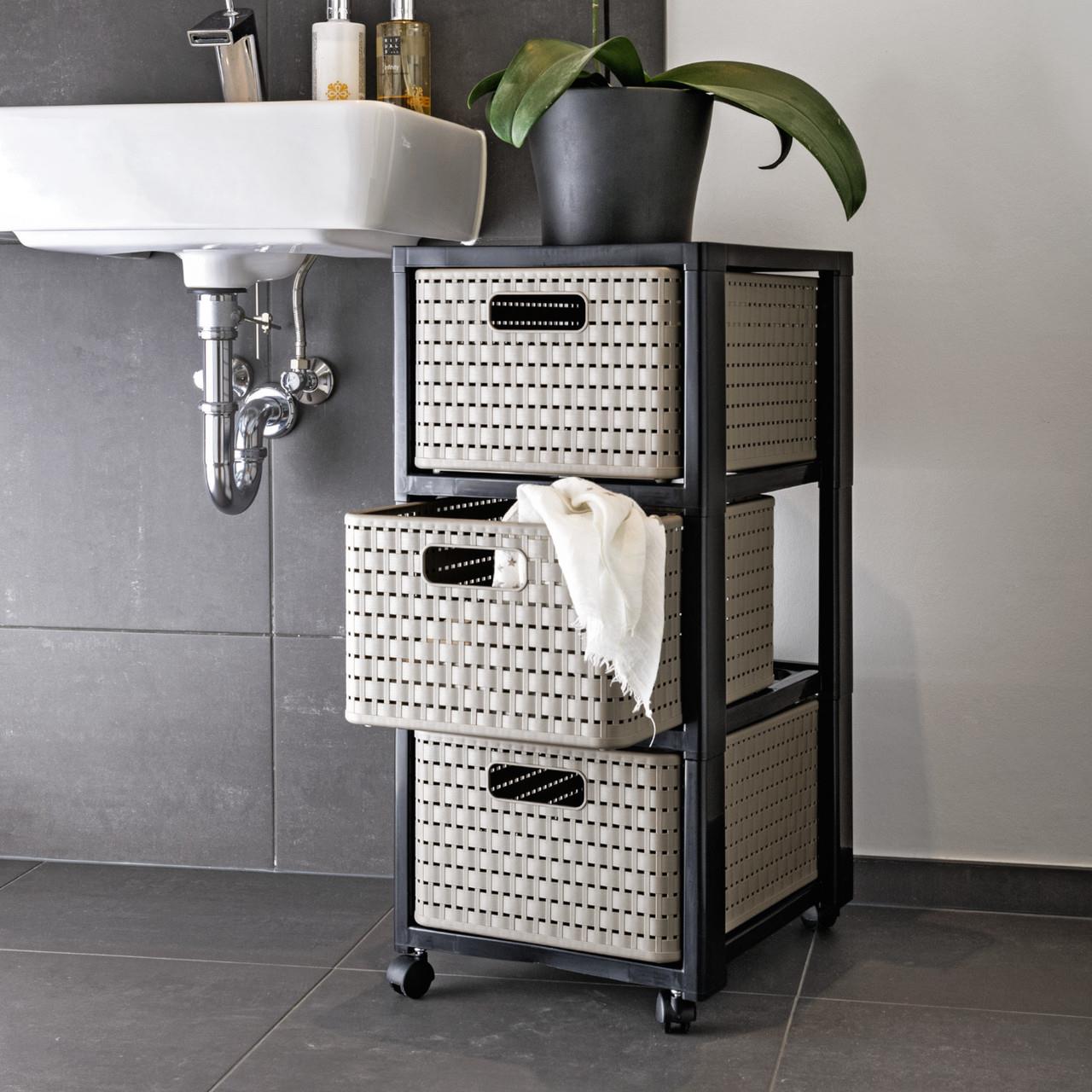 Выдвижной комод Rotho COUNTRY с 3 ящиками на колесиках.