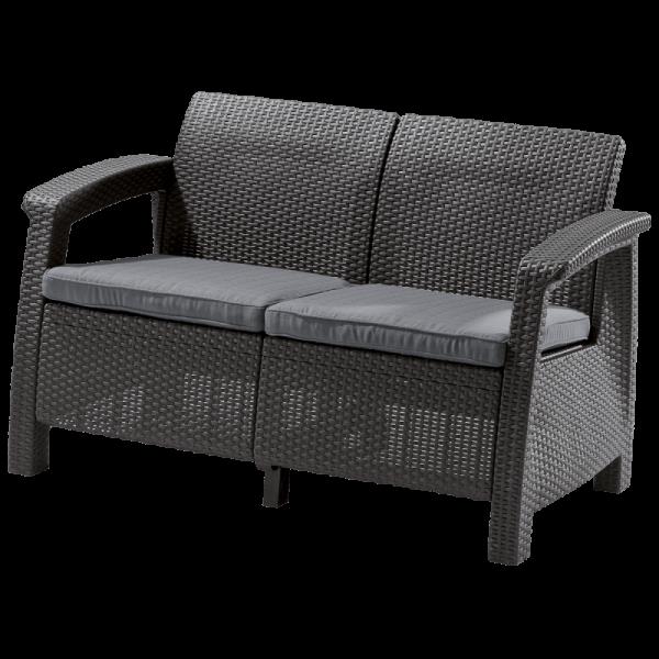 Не смотря на то, что комплект выполнен из неметаллического каркаса, мебель устойчивая и прочная и без труда выдержит большой вес. Отсутствие металлических деталей гарантирует отсутствие ржавчины и долговечность. Комплект мебели Corfu Set изготовлен из прочного погодостойкого пластика, имитирующего ротанг. Благодаря стойкому полипропилену цвета не выгорают на солнце и не бледнеют со временем. Чехлы на подушках выполнены из плотной ткани, так же устойчивой к атмосферным явлениям.
