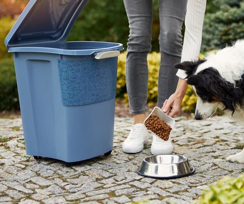 Контейнер для корма для животных ARCHIE | АРЧИ вмещает 38 литров или 18 кг. Крышка со встроенным силиконовым уплотнением гарантирует отсутствие запахов. Благодаря зажиму затвора четвероногие любимцы не могут самостоятельно открывать контейнер для корма. Благодаря 4 легкоуправляемым колесам, ящик для хранения можно легко транспортировать. Контейнер легко моется и чистится. Изготовлен из пищевого пластика.