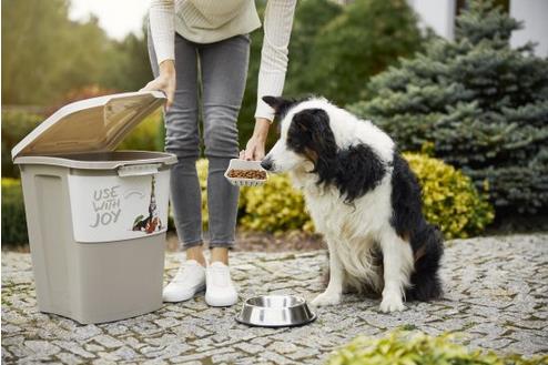 Контейнер для сухого корма также привлекает внимание своим дизайном. Благодаря своей довольно узкой, но высокой форме он может найти место в самом маленьком углу. Пластик прочный и, конечно же, не содержит загрязняющих веществ и BPA. Очистка выполняется быстро и легко с помощью воды и моющего средства, а также в посудомоечной машине.