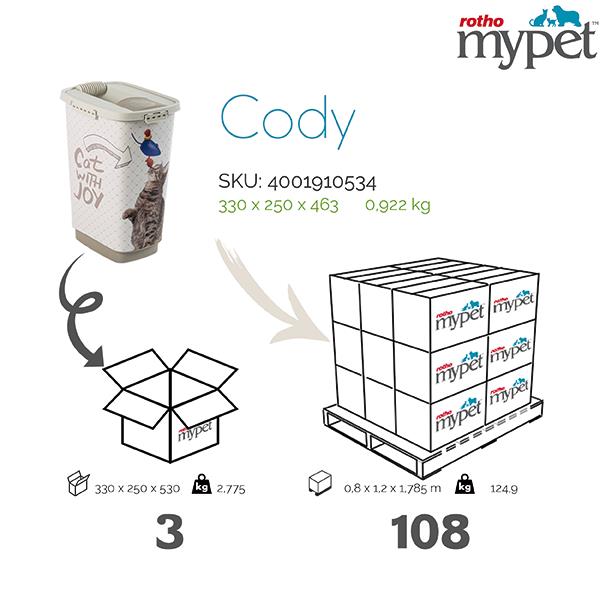 Контейнер для кормов для домашних животных Cody 10л компании Rotho - предназначен для хранения сухого корма Ваших четвероногих питомцев.