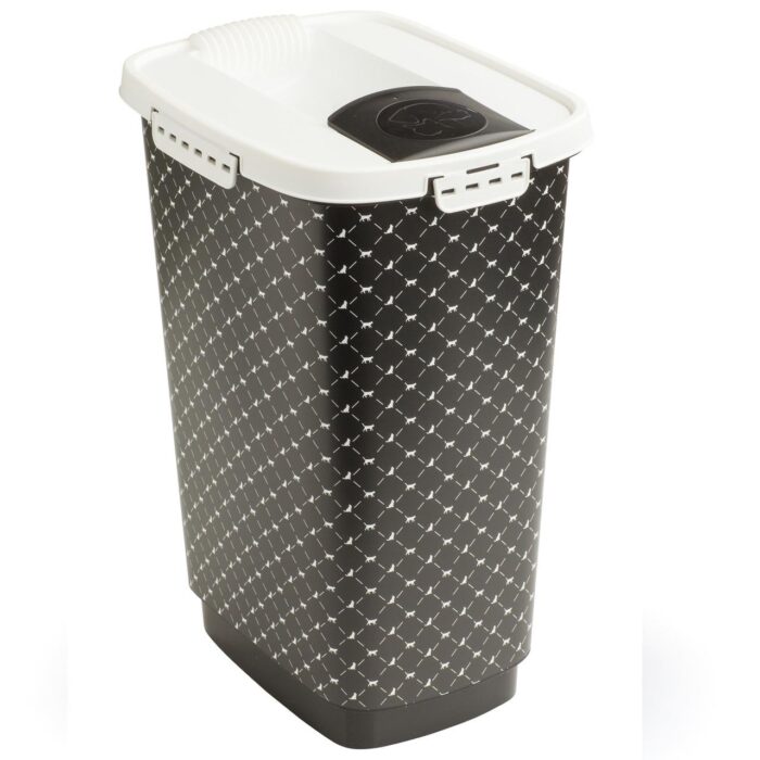 Ящик для хранения имеет эргономичную форму, что позволяет использовать ящик даже одной рукой. Коробка для корма для собак из пластика, конечно же, не содержит вредных веществ и безопасна для пищевых продуктов.
