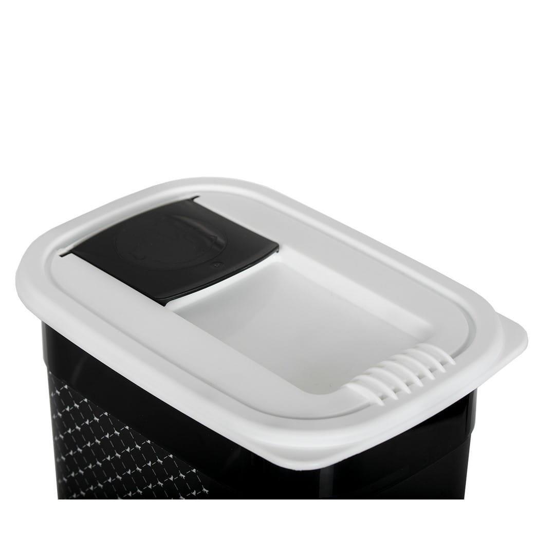 Большой и функциональный контейнер для хранения корма для животных. Крышка снабжена прокладкой и четырьмя защелками для обеспечения герметичности и защиты от выделения нежелательных запахов. Кроме того, надежные защелки и герметичное уплотнение предотвращают от проникновения животного внутрь контейнера. Крышка оснащена открывающимся дозатором для измерения количества необходимой пищи .