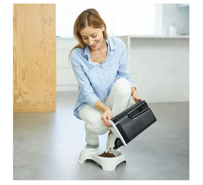 С помощью встроенного защитного устройства в крышке вы можете положить сухой корм, не прилагая особых усилий.