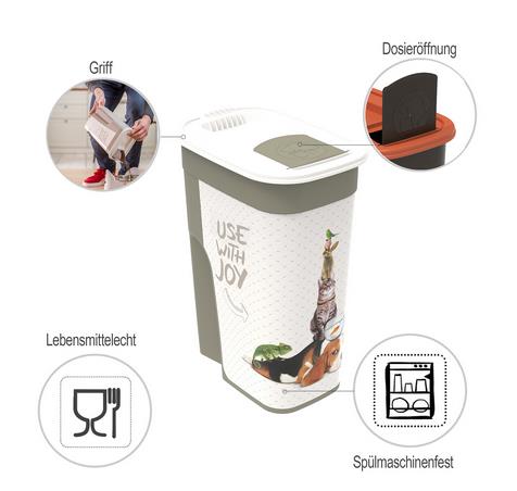 Ящик для хранения имеет эргономичную форму, что позволяет использовать ящик даже одной рукой. Коробка для корма для собак из пластика, конечно же, не содержит вредных веществ и безопасна для пищевых продуктов.