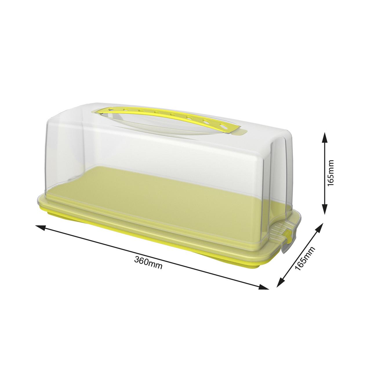 Красивый контейнер для торта FRESH идеально подходит для тортов высотой до 11 см. Сочетание прозрачного колпака, красочной сервировочной тарелки и ручки делает прямоугольную коробку для торта FRESH привлекательной на каждом фуршете. Пластина и колпачок идеально соединены друг с другом защелкой. Ароматы сохраняются, а коржи не засыхают. Ручка эргономичной формы удобно лежит в руке и облегчает транспортировку. Размеченные линии внизу позволяют вырезать ровные куски. Контейнер для торта FRESH изготовлен из пищевого пластика, его можно мыть в посудомоечной машине.