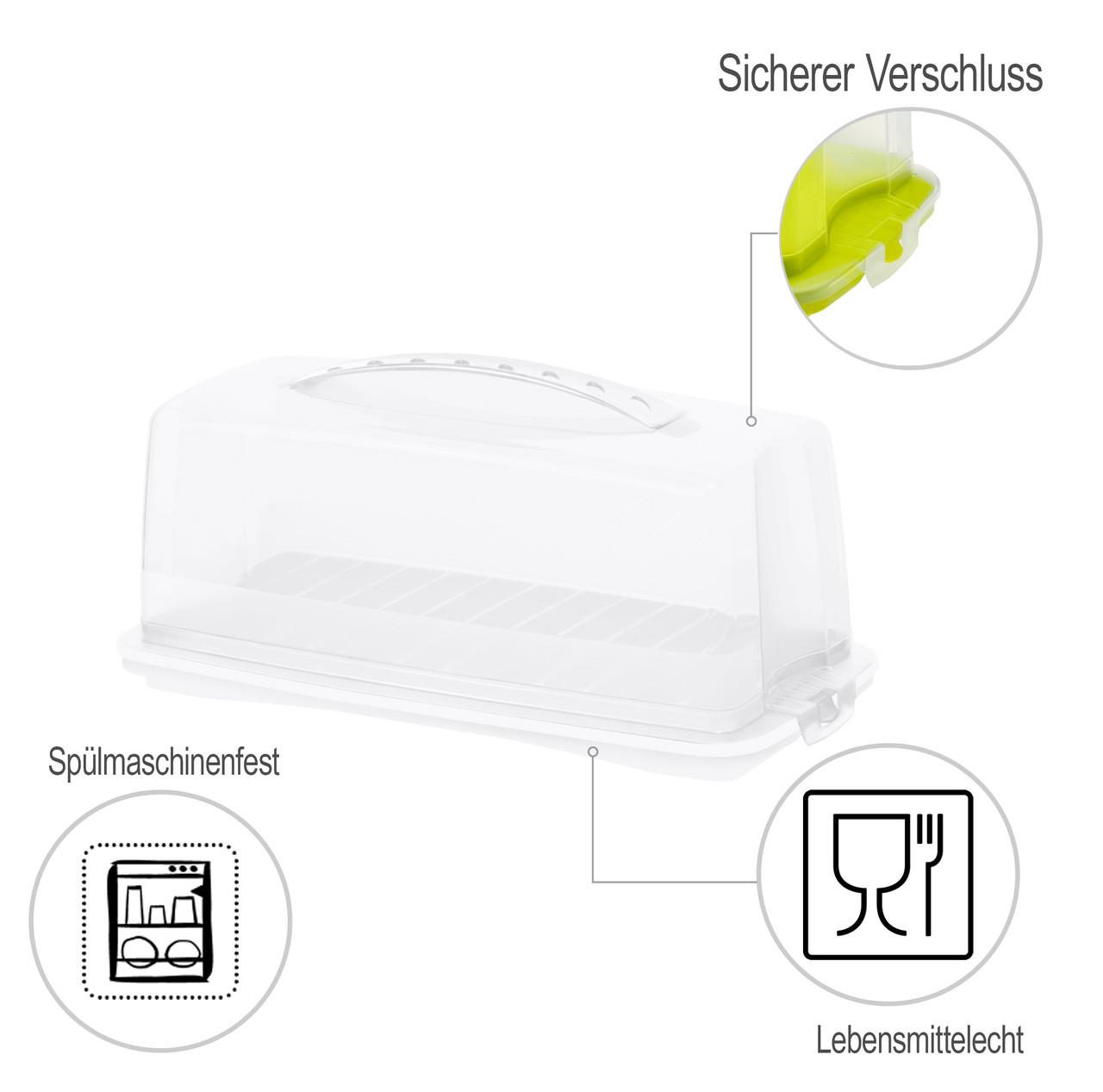 С контейнером для торта FRESH от Rotho ваш домашний торт будет доставлен целым и невредимым. Будь то барбекю, пикник или семейное торжество, портативную коробку для торта можно брать с собой куда угодно. Надежная транспортировка гарантирует надежный захват, а также надежное запирающееся закрытие.