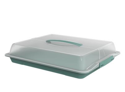 Тортница с крышкой FRESH High, подставка для торта пластиковая, контейнер для пирожных прямоугольный, большая коробка для кексов, зеленая