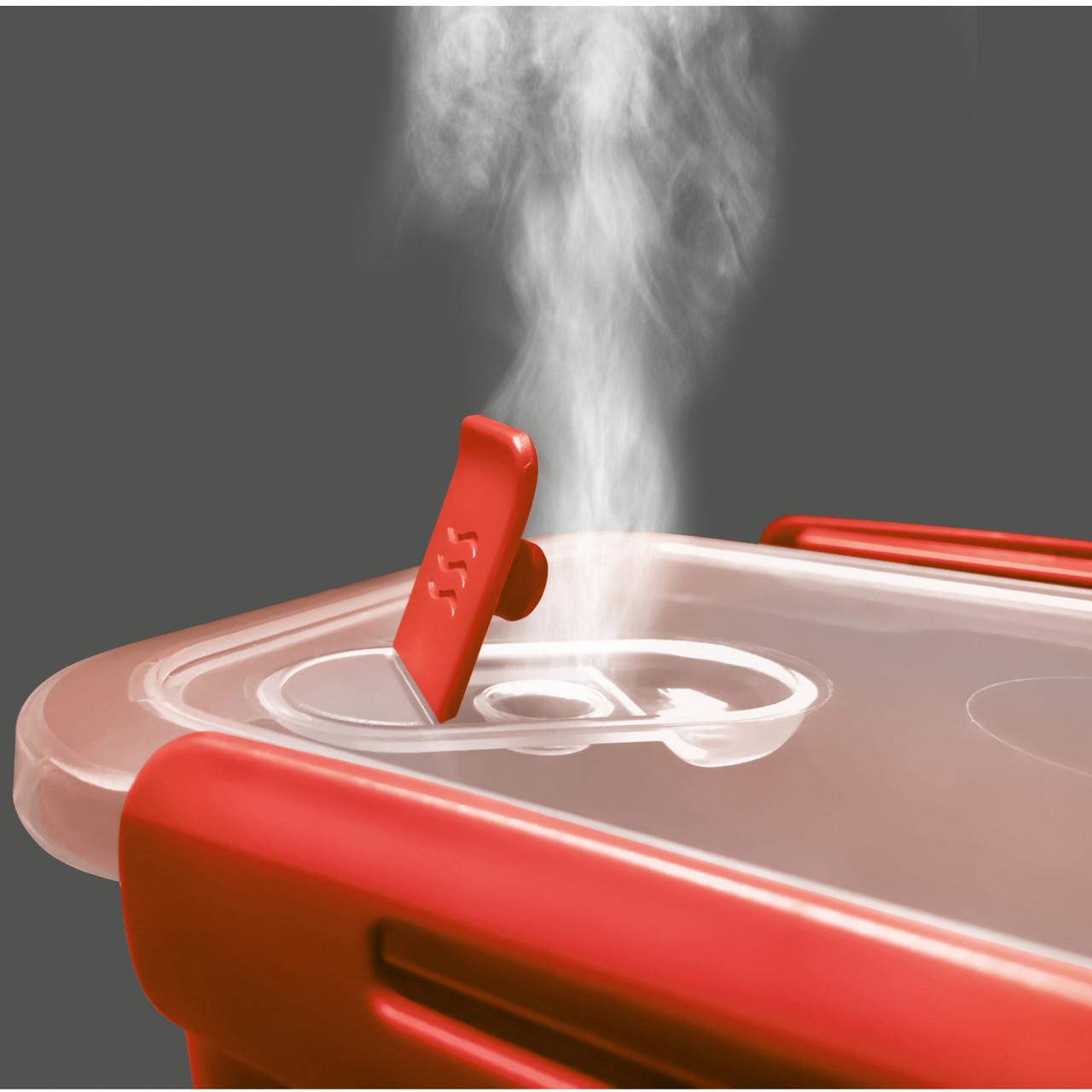 Водяной пар во время приготовления пищи выходит через паровой клапан в крышке, а распылители соуса надежно остаются в контейнере — чистить потом нечего. Даже чистку микроволновки можно удобно оставить в посудомоечной машине после использования, не испортив высококачественный пластик.