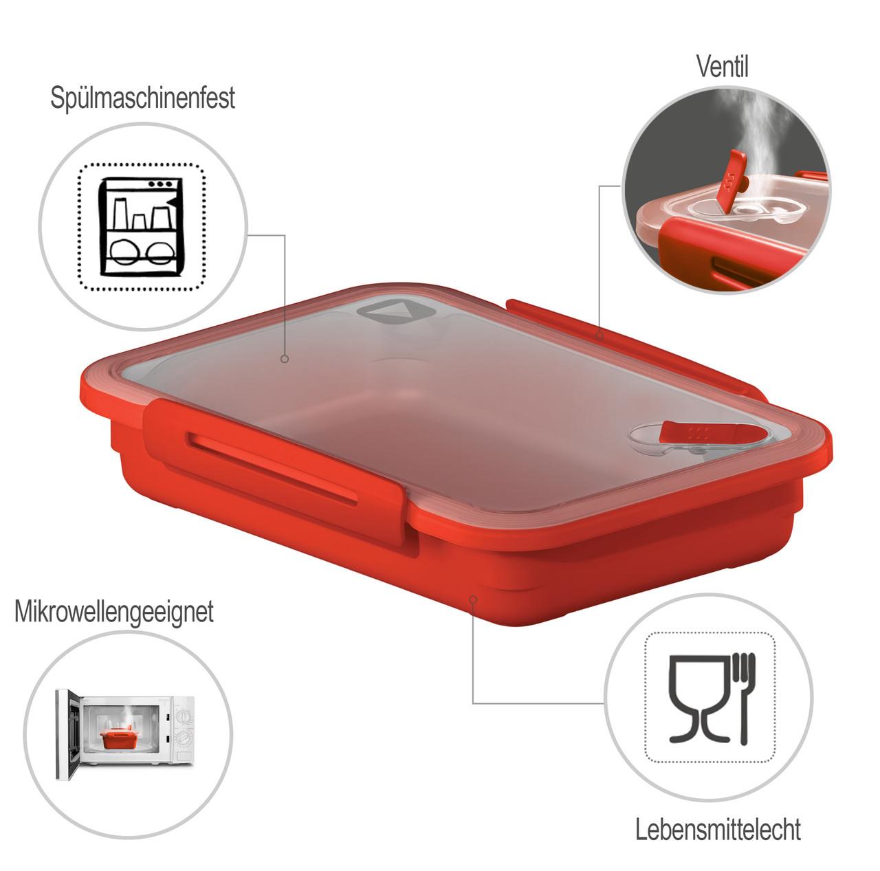 Микроволновая серия MEMORY имеет объем 1 л и закрывается соответствующей ароматонепроницаемой крышкой. Крышка имеет встроенный паровой клапан и легко открывается благодаря защелке. Все контейнеры для микроволновых печей и крышки линии MEMORY имеют символьную маркировку, чтобы вы могли сразу распознать подходящие детали. Прочный пластик, конечно же, подходит для пищевых продуктов и не выделяет никаких вредных веществ при контакте с горячей пищей.