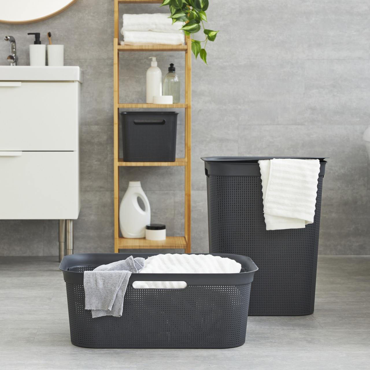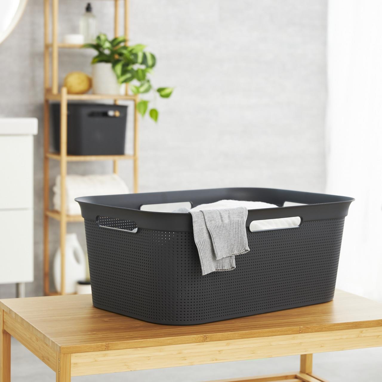 Корзина для белья Laundry Basket объемом 41 литров - отличный выбор для людей, ценящих эстетику и комфорт. Корзина для вещей выполнена из прочного пластика, что позволит переносить и вмещать больше белья. Материал короба устойчив к влаге. По бокам ящик для хранения имеет удобные ручки. Приятная фактура и классический черный цвет корзины для белья с легкостью дополнит интерьер ванной комнаты и прачечной. Пластиковая корзина для грязного белья можно ставить на стиральную машину. Универсальная бельевая корзина также может использоваться как коробка для хранения веще в шкафу или стеллаже. В ней можно хранить одежду и обувь, игрушки и канцелярские принадлежности, косметику и бытовую химию. Корзинка Roth будет отличным аксессуаром для дома и дачи.