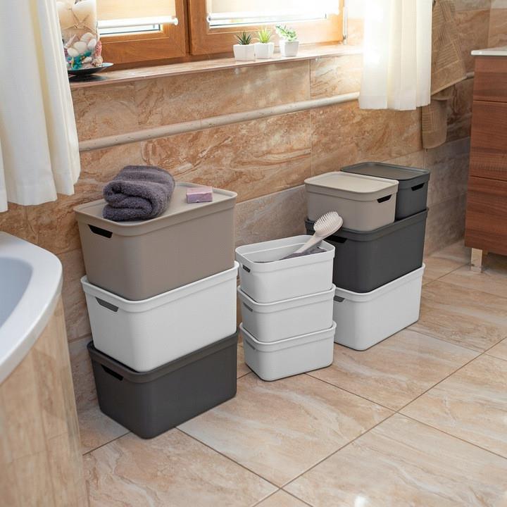 Пластиковая корзина для хранения вещей от Rotho – это практичное и стильное решение навести порядок дома. Теперь поддерживать порядок в квартире станет проще, ведь большой контейнер с крышкой пригодится для хранения игрушек, обуви и одежды, косметики и канцелярии.Простой и лаконичный дизайн корзины для хранения подойдет для любого помещения: офиса, ванной и туалетной комнаты, спальни, детской. Короб выполнен из прочного и экологичного пластика и вписывается в классический и современный интерьер. Пластмассовый корпус отличается долговечностью и не впитывает запахи. Прямоугольная и эргономичная форма коробки для хранения позволит Вам легко распоряжаться свободным пространством в квартире. Стеллажный короб просто разместить в шкаф, на полках или этажерках. Контейнер имеет удобные и прочные ручки, облегчающие переноску. Универсальная корзина Rotho подойдет для ранения пакетов, аксессуаров, швейных и канцелярских принадлежностей, одежды и белья. Порадуйте себя и близких таким полезным подарком! У нас вы найдете ящики для хранения объемом 5 и 16 литров в различных расцветках.