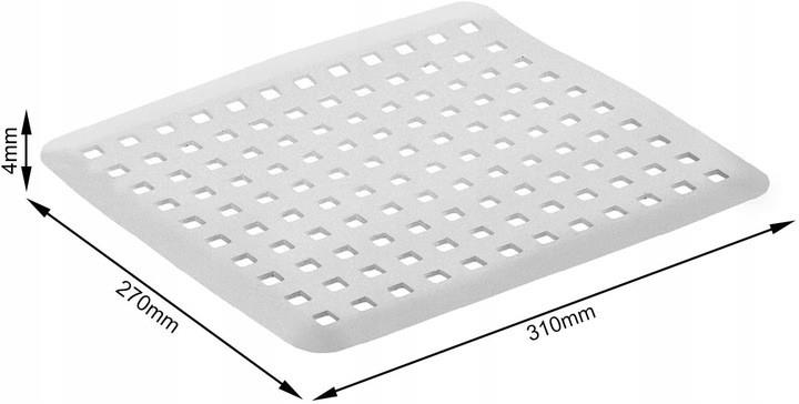 Коврик для раковины прямоугольной формы. Защищает дно раковины от царапин и трещин. Для того, чтобы было легче подогнать размер под раковину, коврик можно подрезать ножницами.