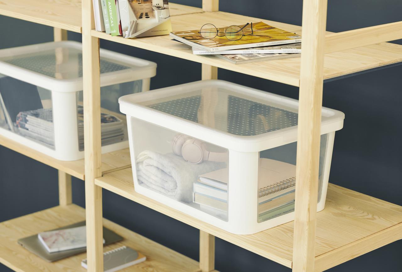Из стильного бамбука, с детским мотивом или с застежкой-клипсой — выберите крышку в зависимости от функциональности, свойств, дизайна или цены. Все типы крышек подходят ко всем основаниям. Это создает множество возможностей для идеальной организации вашего дома. Прозрачная крышка изготовлена из 100% переработанного материала и выдерживает вес до 20 кг.