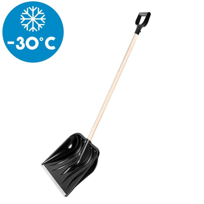 Удобная и лёгкая снеговая лопата с деревянным черенком и совком из морозостойкого пластика (до -30 град.). Край совка оснащен алюминиевым резцом. Эргономичная V-образная рукоятка из морозостойкого пластика для удобства использования.