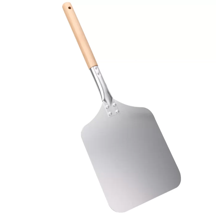 Алюминиевая лопатка для пиццы размером 30х35 см. С деревянной ручкой. Применяется для укладки пиццы и других мучных блюд на гриль.