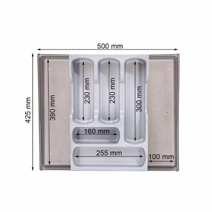 Вставка для столовых приборов изменяемого размера подходит для большинства кухонных ящиков. Просто раздвиньте обе части контейнера, чтобы получить нужный размер.
