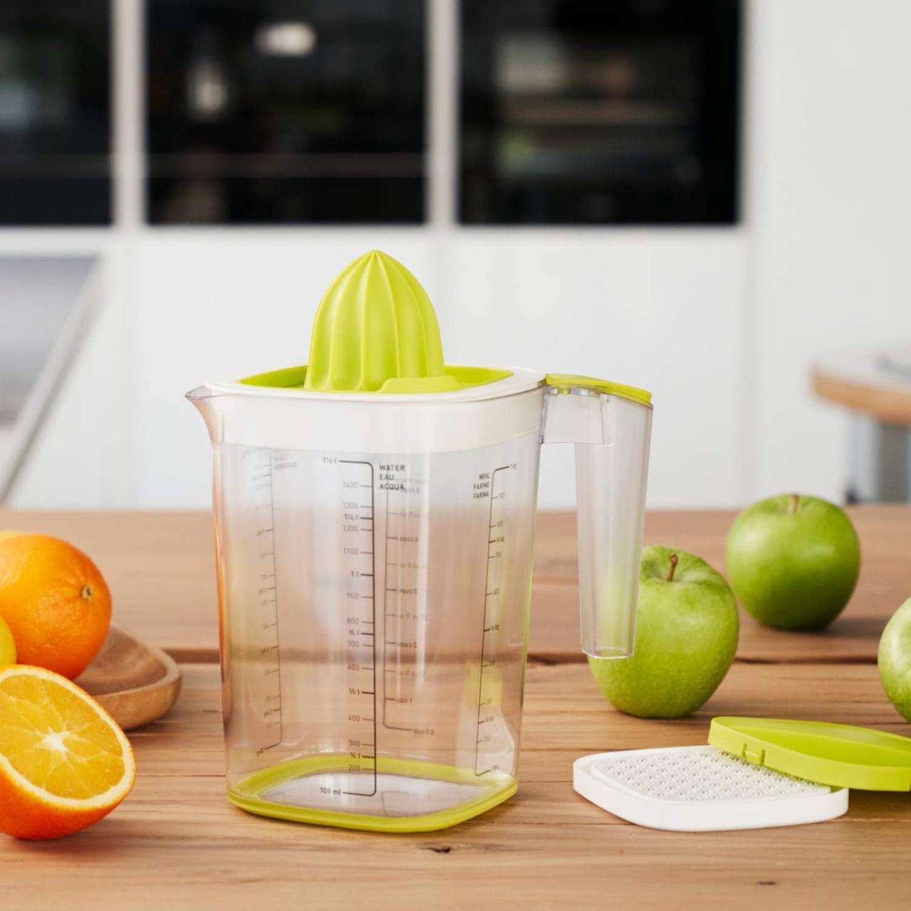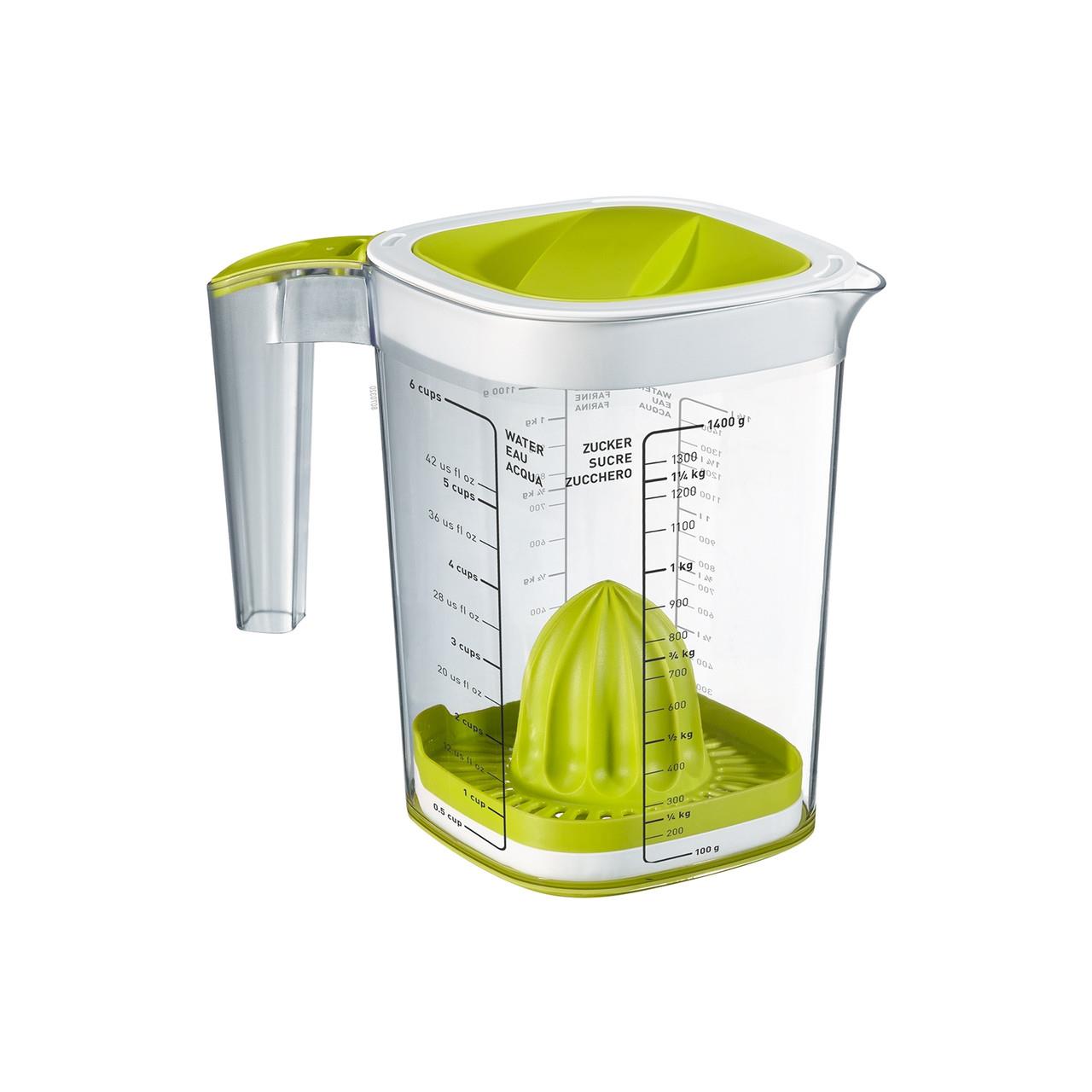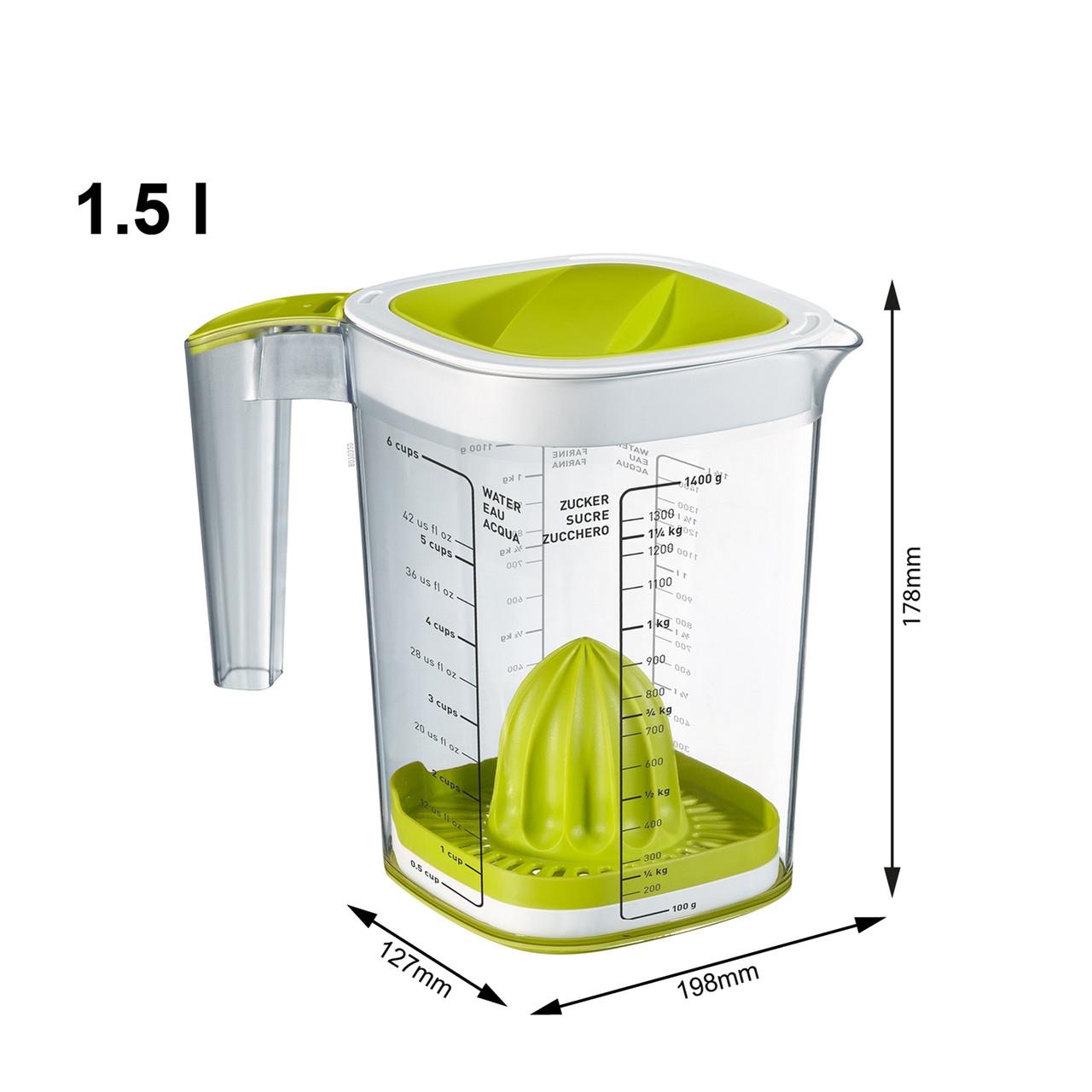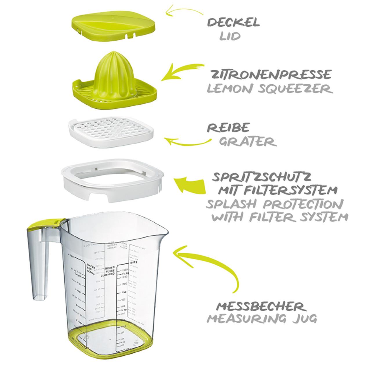 Если вы хотите выжать лимон, это тоже возможно без проблем с помощью предоставленного эссе. Благодаря форме и свойствам пластикового мерного стакана обеспечивается безопасная подставка во всех рабочих процессах.