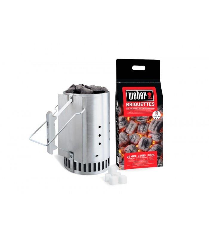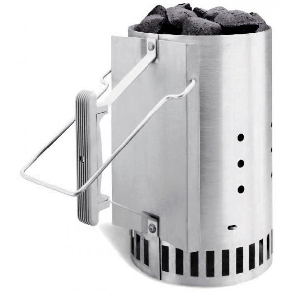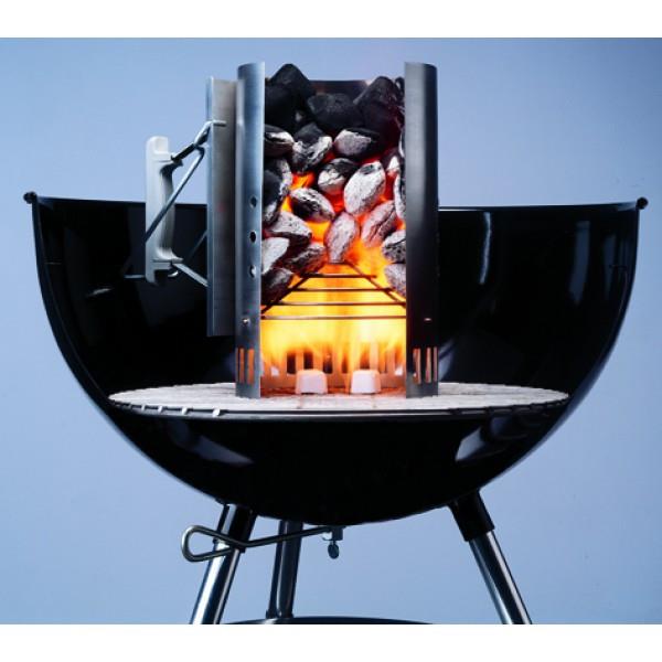 Cтартер для розжига Weber изготовлен из качественной стали с термостойкой ручкой. Это замечательное приспособление для быстрого розжига угля использует прямую тягу. Для работы нужно просто заполнить трубу стартера углем, вниз подложить кубики для розжига и немного сухой бумаги. Примерно за 15-20 минут угли подготовлены и их можно высыпать на решетку для дальнейшего использования. Это позволит гораздо быстрее приступить непосредственно к приготовлению пищи, не теряя времени на подготовку гриля.