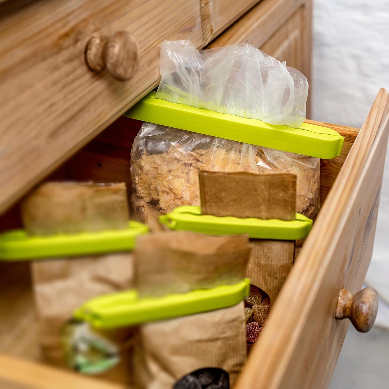Зажимы для пакетов ONDA. Благодаря плотной застежке еда останется свежей дольше и не потеряет свой аромат. Зажимы изготовлены из твердого пластика, не содержащего BPA, морозоустойчивы.