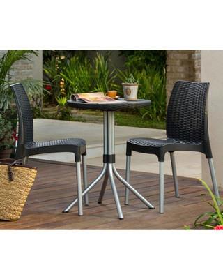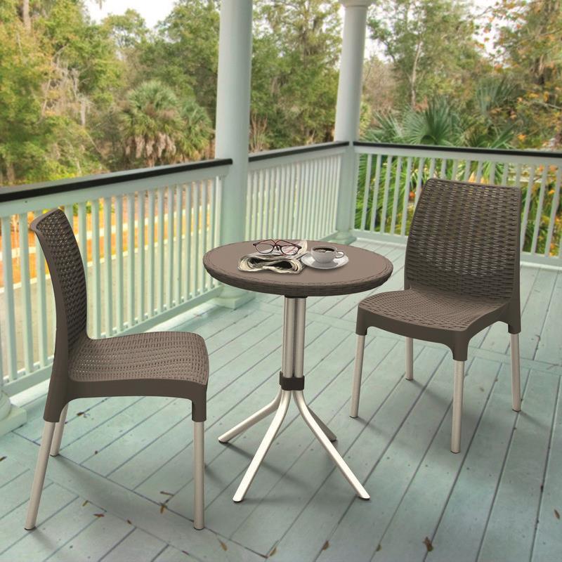 Стильный комплект Chelsea Set (Челси) – идеальная мебель для небольшого пространства! Компактный набор мебели, он не требует обслуживания, а современный дизайн украсит зону отдыха на балконе, небольшой веранде или во внутреннем дворике. Текстура поверхности стульев и стола напоминает ротанговое переплетение , но выполнена мебель из полипропилена, что гарантирует долгий срок службы и надежность. Легкие ножки из алюминия создают интересную визуальную комбинацию.