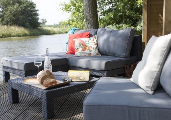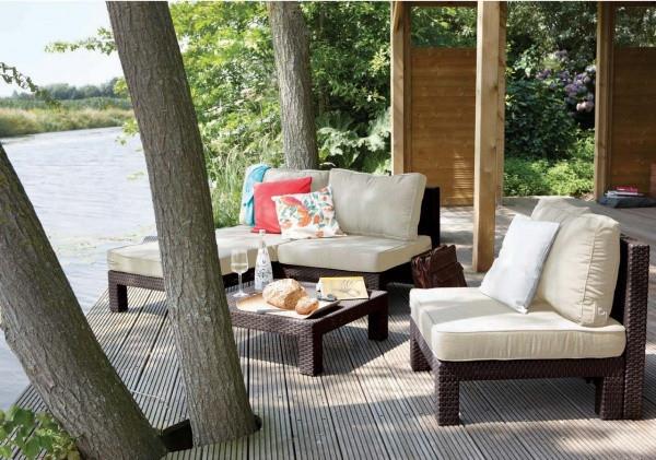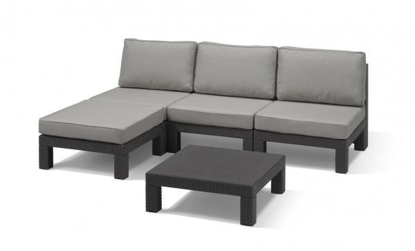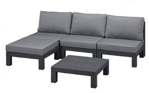 Вся мебель KETER изготовлена из прочного атмосферостойкого пластика, имитирующего ротанг. Благодаря стойкому полипропилену цвета не выгорают на солнце и не бледнеют со временем. Чехлы на подушках выполнены из плотной ткани, так же устойчивой к атмосферным явлениям. Чехлы легко снимаются, если нужно постирать.