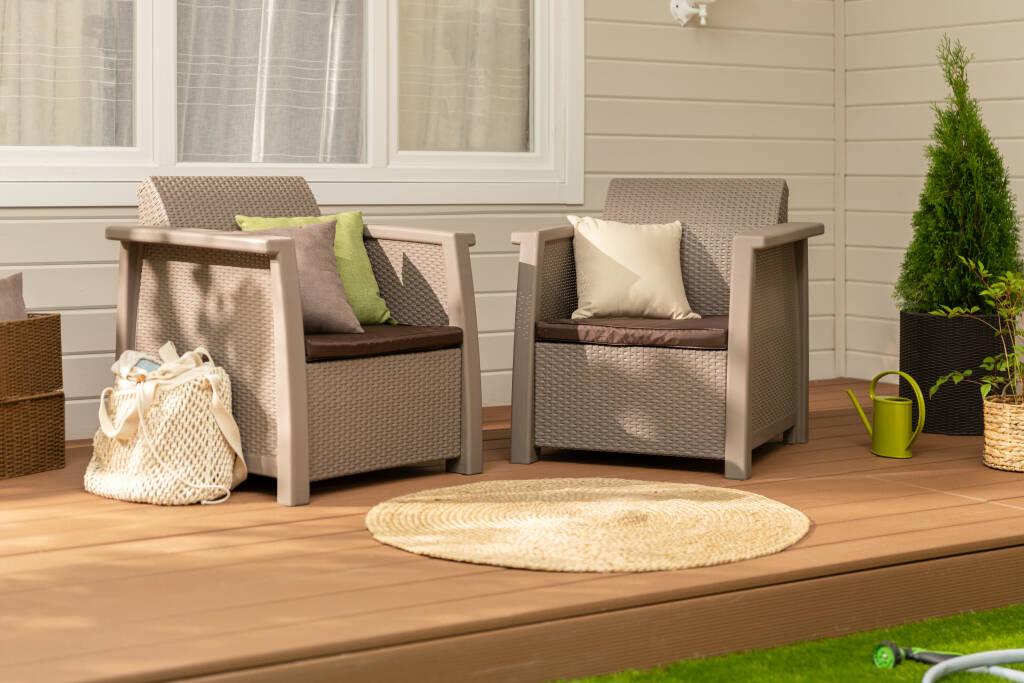 Эргономичный дизайн, сделано из прочного пластика. Неметаллическая рама – не ржавеет и не гниет.Простая сборка без инструмента. Благодаря стойкому к высоким температурам полипропилену, цвета не выгорают и не бледнеют, легко мыть и удобно хранить.
