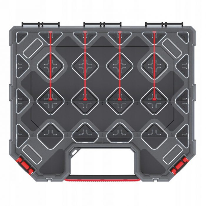УНИКАЛЬНЫЕ ОСОБЕННОСТИ КОРПУСА TAGER:Прочные рейлинги – безопасная транспортировка, защита от случайного выпадения из органайзеровЭргономичная ручка – Очень приятная ручка, значительно облегчающая транспортировку коробки.Две резиновые вставки – Верхняя часть ящика оснащена двумя съемными резиновыми органайзерами для инструментов, шурупов и т.п.Крепежные отверстия – задняя част