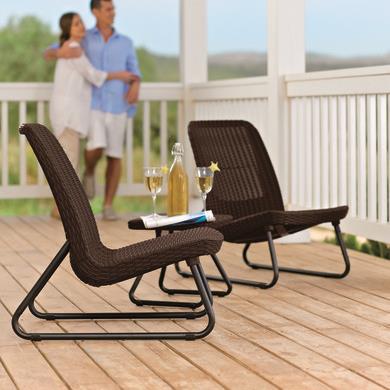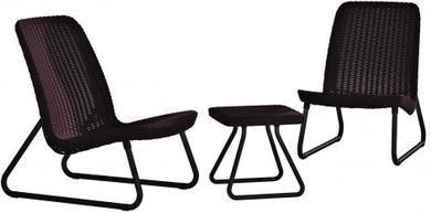 Мебельный гарнитур Rio Patio- это сочетание современного стиля и удобства. В состав гарнитура входят два низких стула и квадратный столик, который, благодаря своим небольшим размерам, идеально заполняет небольшие пространства, такие как балкон дома или небольшой садик.
