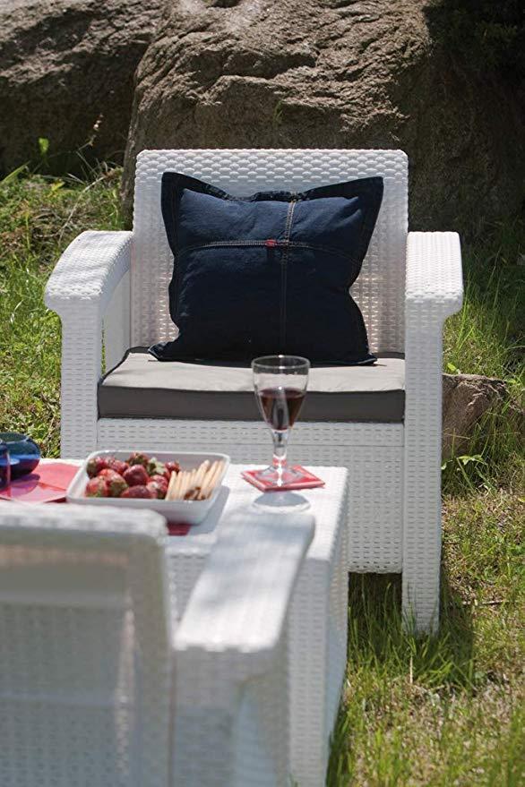 Комплект состоит из столика и двух кресел с мягкими подушками. Элегантность, удобство и эргономика - это гарантия удовольствия от отдыха на свежем воздухе. Простота сборки и легкость содержания в чистоте - это дополнительные преимущества этой мебели.